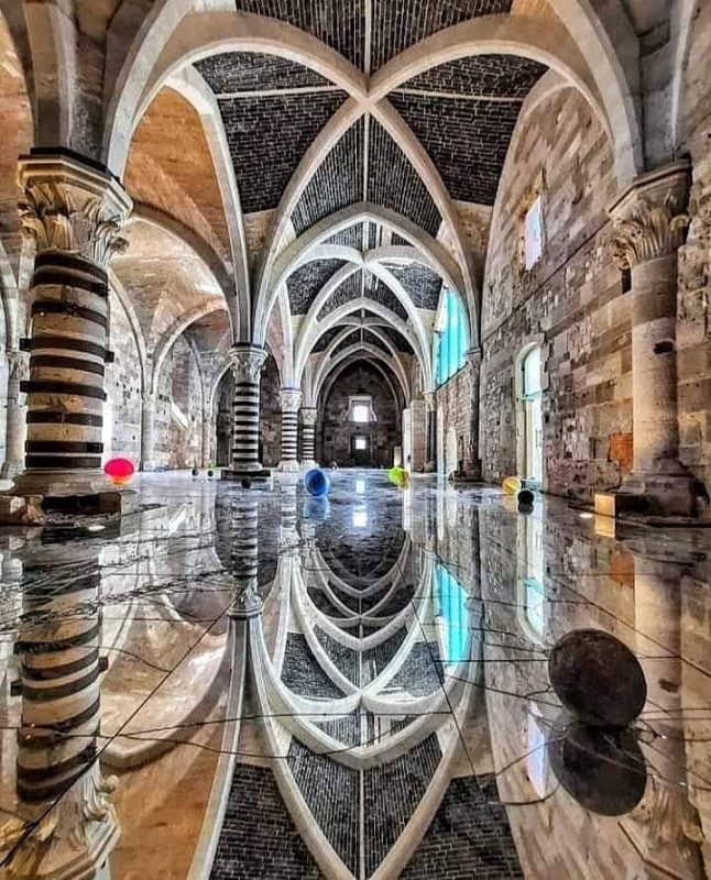 Le navate voltate a crociera, l’ingresso con portale ogivale strombato e i due celebri arieti bronzei ellenistici (oggi uno conservato a Palermo) testimoniano la fusione tra rigore militare e raffinatezza artistica. Il Castello Maniace non fu solo bastione strategico, ma residenza itinerante dell’imperatore, teatro di una corte che univa cavalieri, poeti e scienziati, incarnando l’idea stessa di un impero universale.