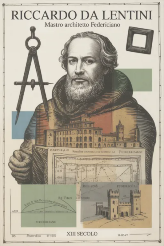 Accanto al sovrano, emerge l’ingegno di Riccardo da Lentini, prepositus novorum hedificiorum dell’imperatore: architetto, ingegnere e funzionario imperiale che progettò e riorganizzò molti dei più celebri castelli federiciani, imprimendo in essi un linguaggio architettonico nuovo, destinato a influenzare persino il celebre Castel del Monte.